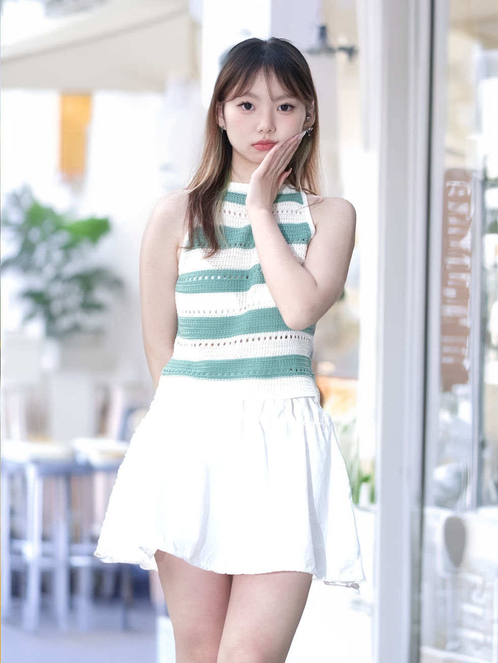 ミントストライプニットトップ