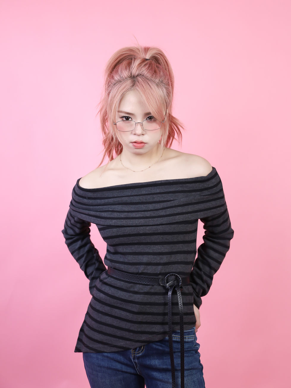 DLKCB2006JP肩見せが可愛いストライプ柄ニット フレンチガール気分を楽しめる秋らしい一枚で着回し力も抜群