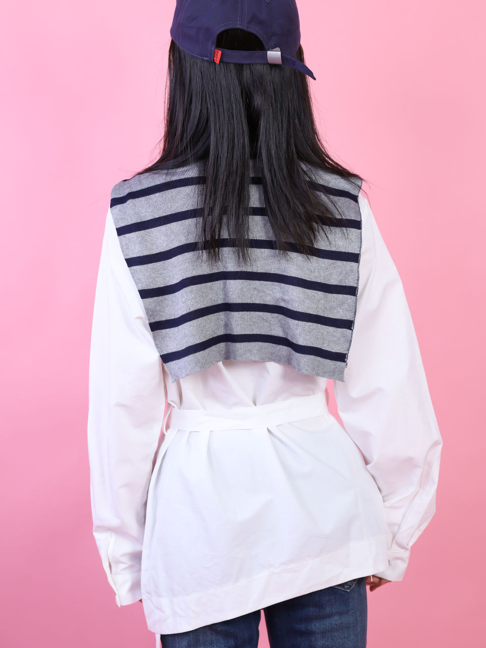 DLKCB2025JPゆったりシルエットホワイトシャツ オーバーサイズ肩掛け風デザイン春秋アウター