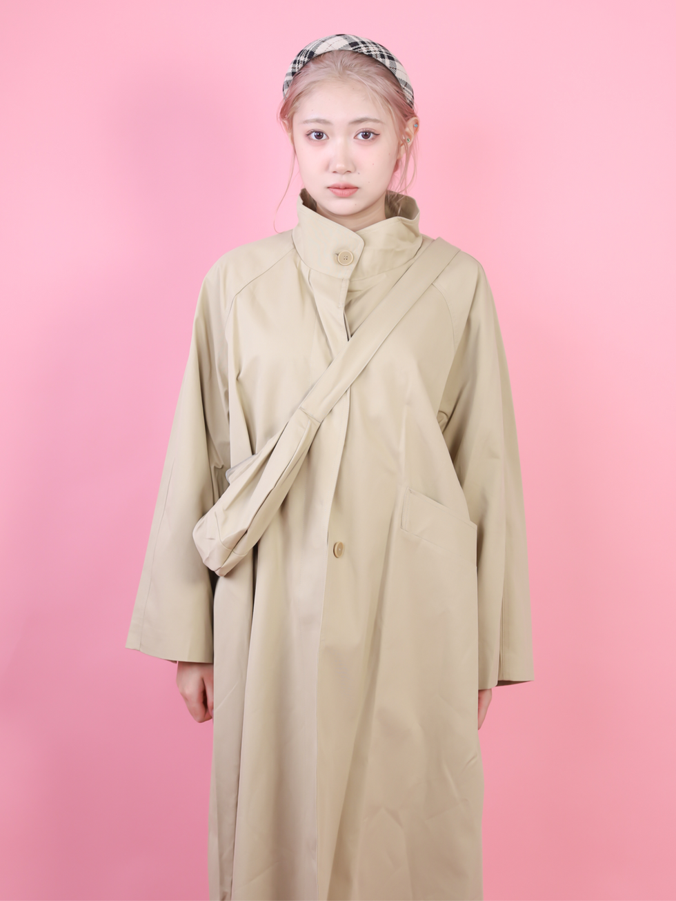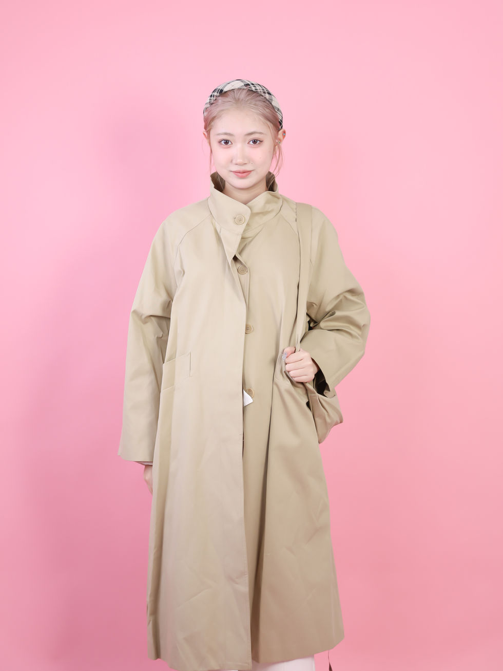 DLKCB2057JPカーキカラー立ち襟ショートトレンチジャケット カジュアルシルエット秋新作アウター