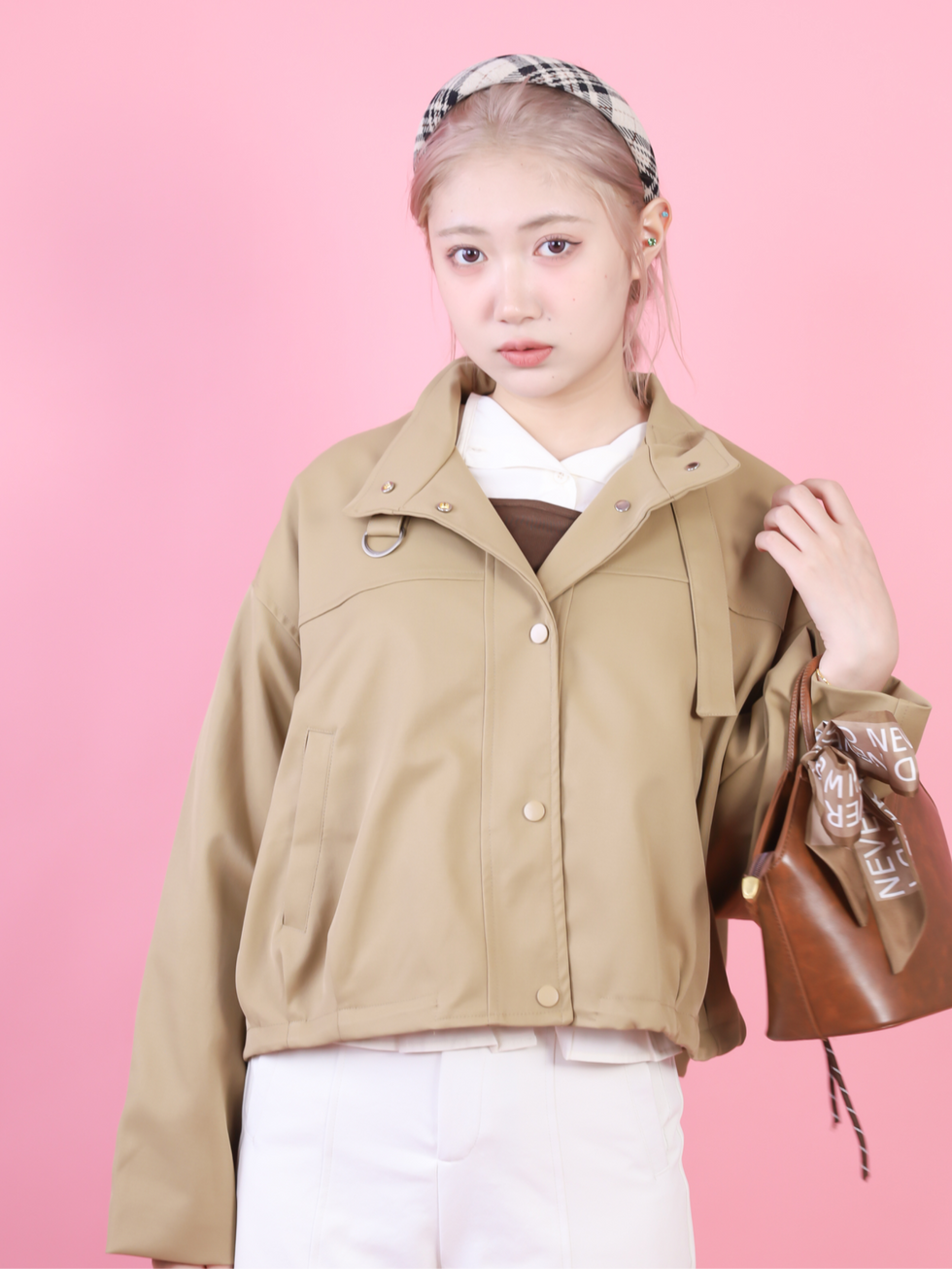 DLKCB2058JPカーキカラー立ち襟ショートトレンチジャケット カジュアルシルエット秋新作アウター