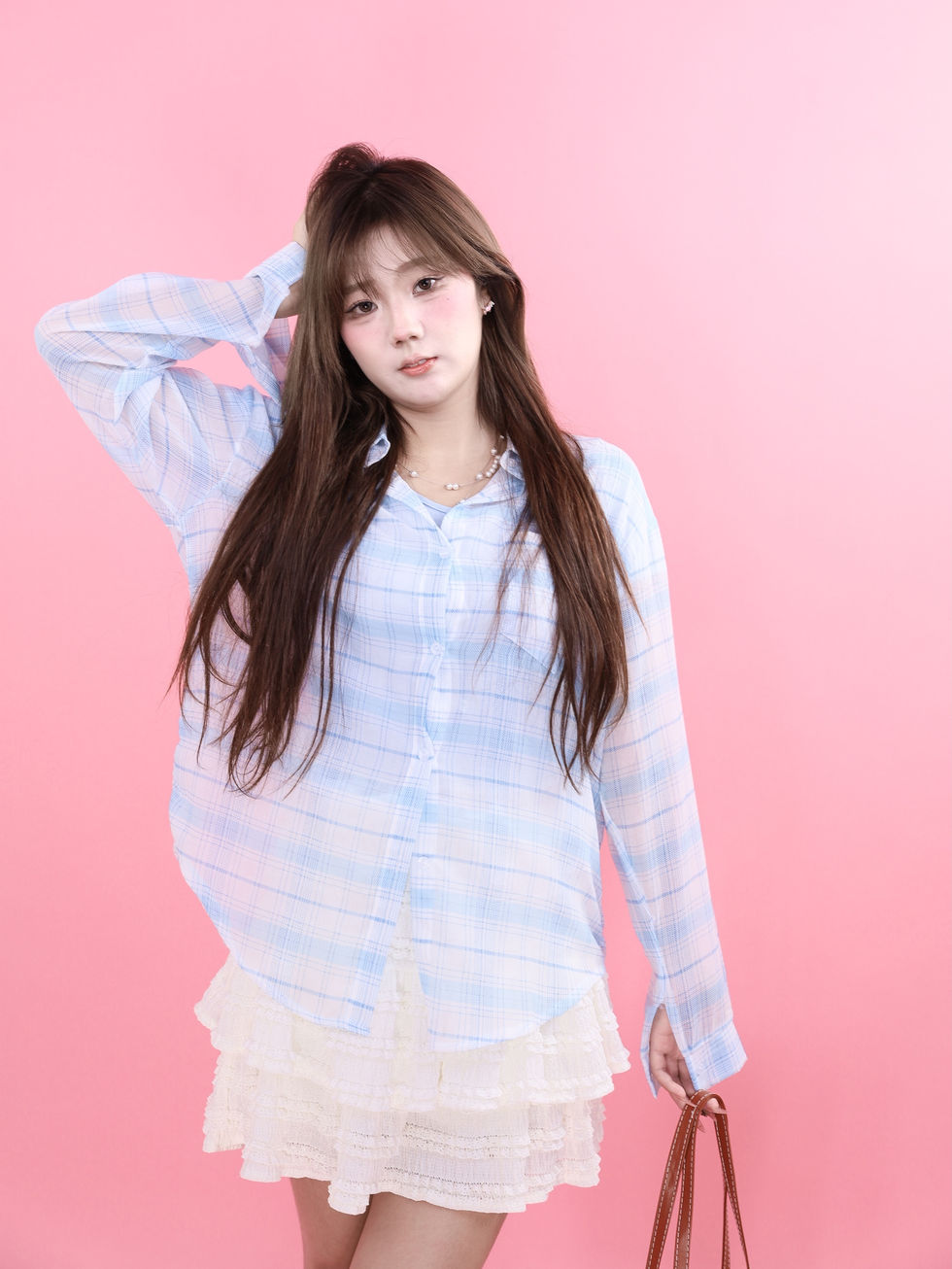 DLKCB2083JP涼しげな着心地の薄手長袖チェック柄シャツ夏の羽織りにも活躍するゆったりシルエットのカジュアルデザイン