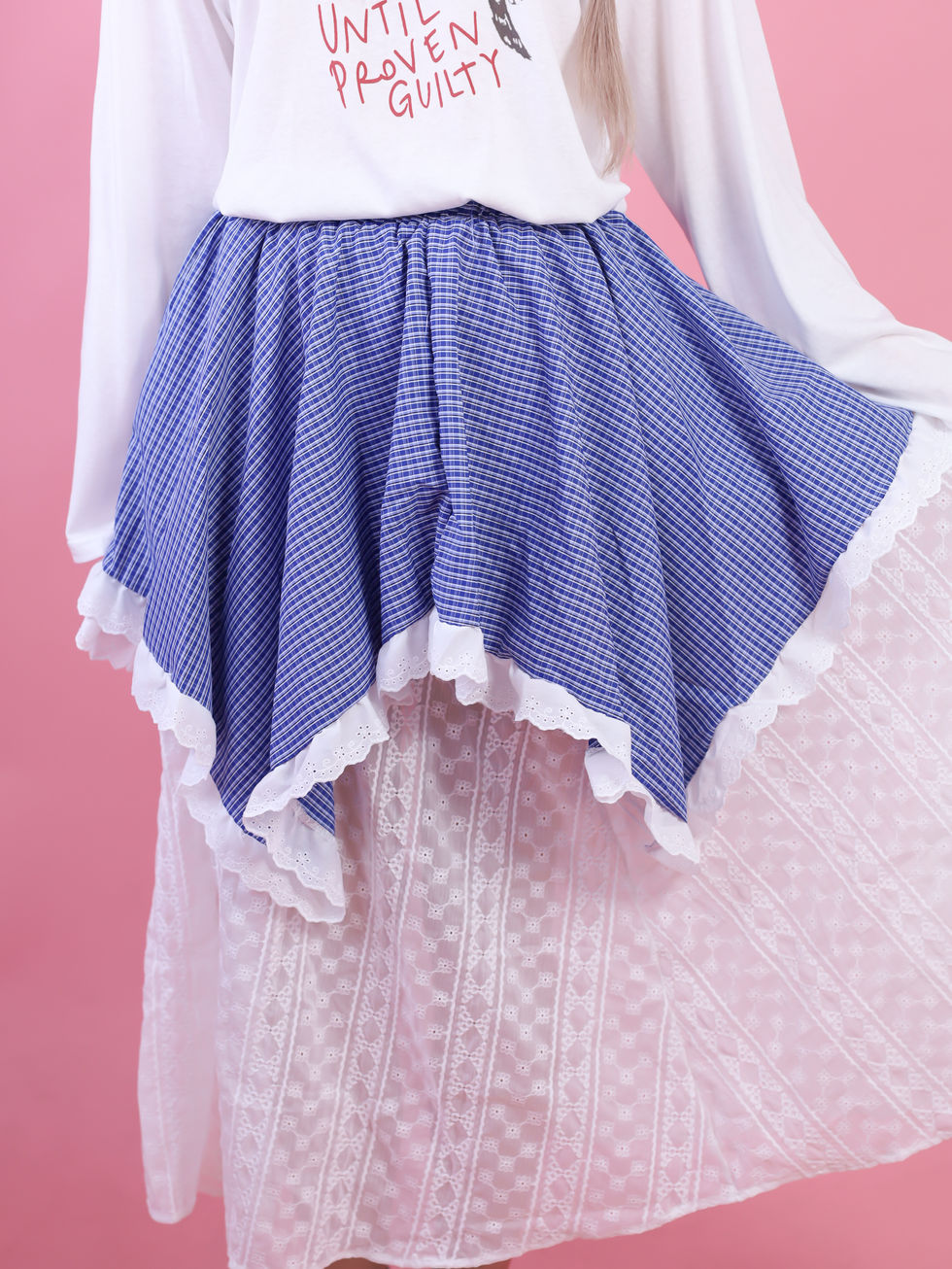 DLKSKG2025JP二枚仕立てアシンメトリースカート ウエストゴム仕様で秋コーデに映えるミディ丈新作