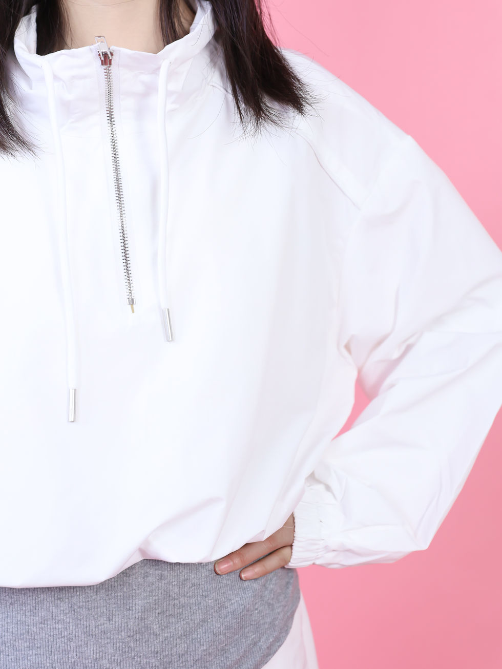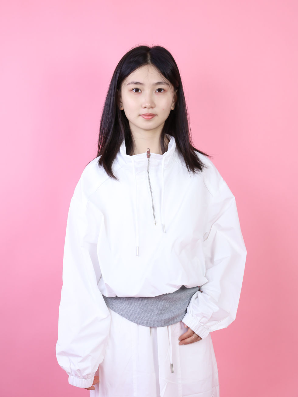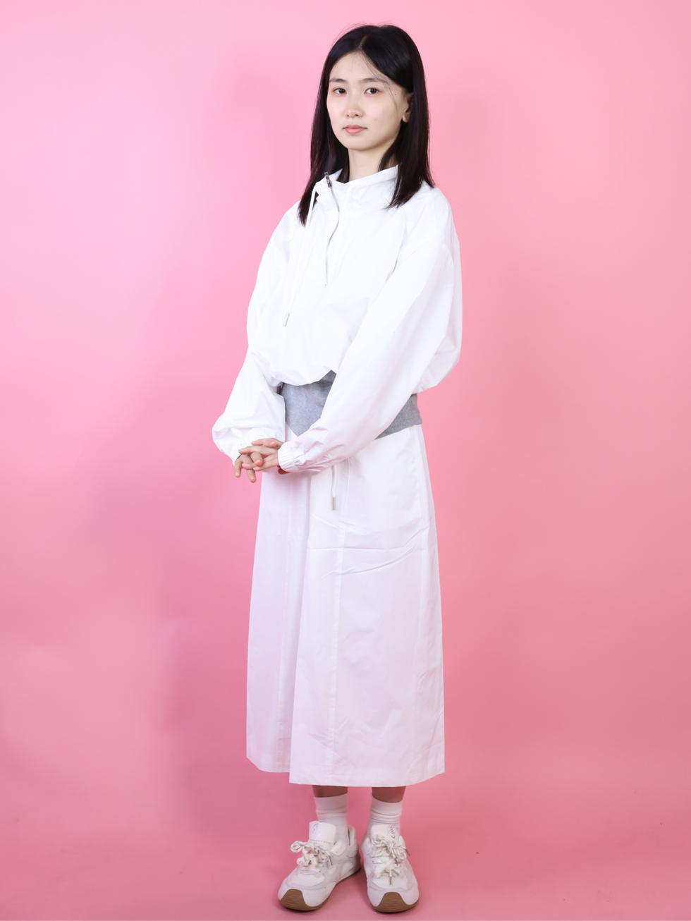 DLKSP2004JP立ち襟ジャケットと白スカートの上下セット ウエスト紐付きで秋に着やすい新作