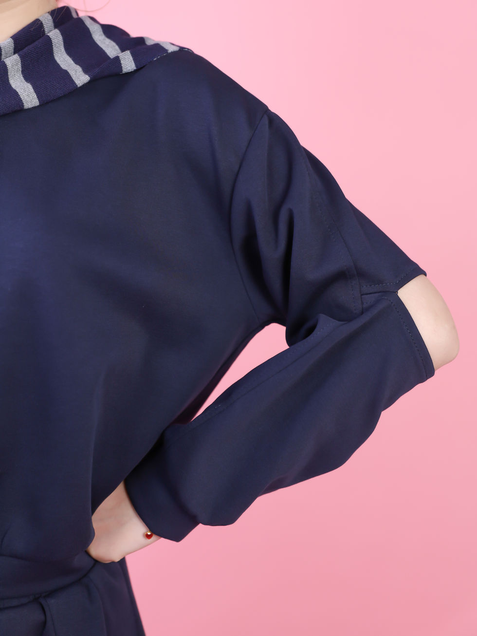 DLKSP2007JP/DLKSP2008JPクルーネック長袖スウェットとストライプショール ハイウエストスカートのセットアップ秋新作