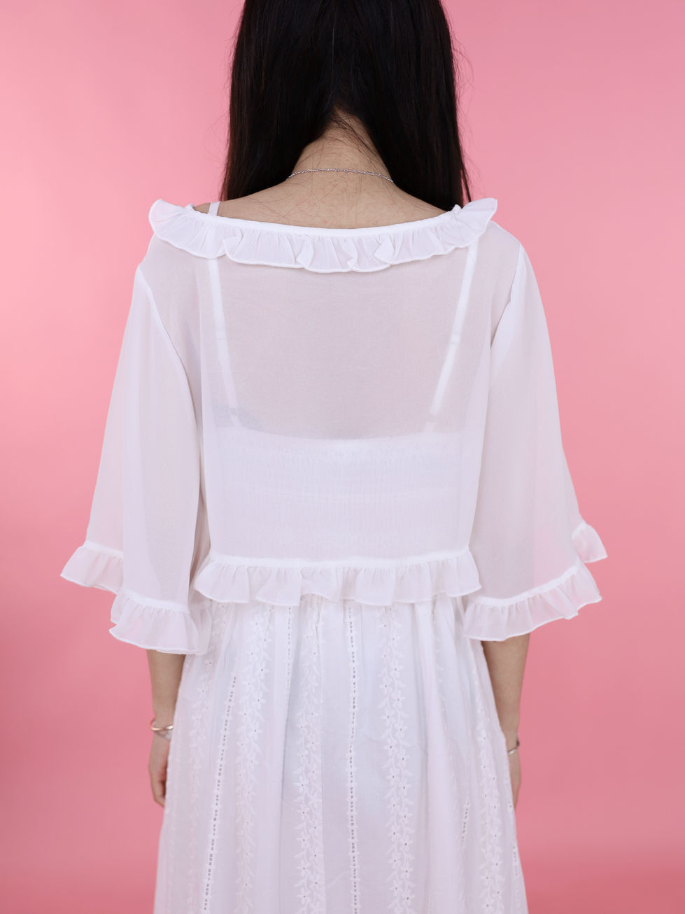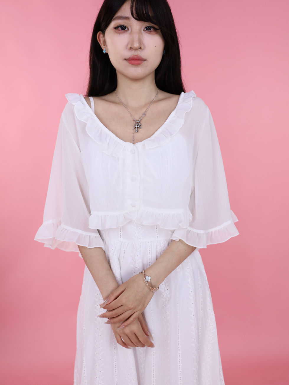 PDLKCB988JP夏用レトロバタフライスリーブカーディガン 甘くて上品な爽やか雰囲気の羽織りシャツ