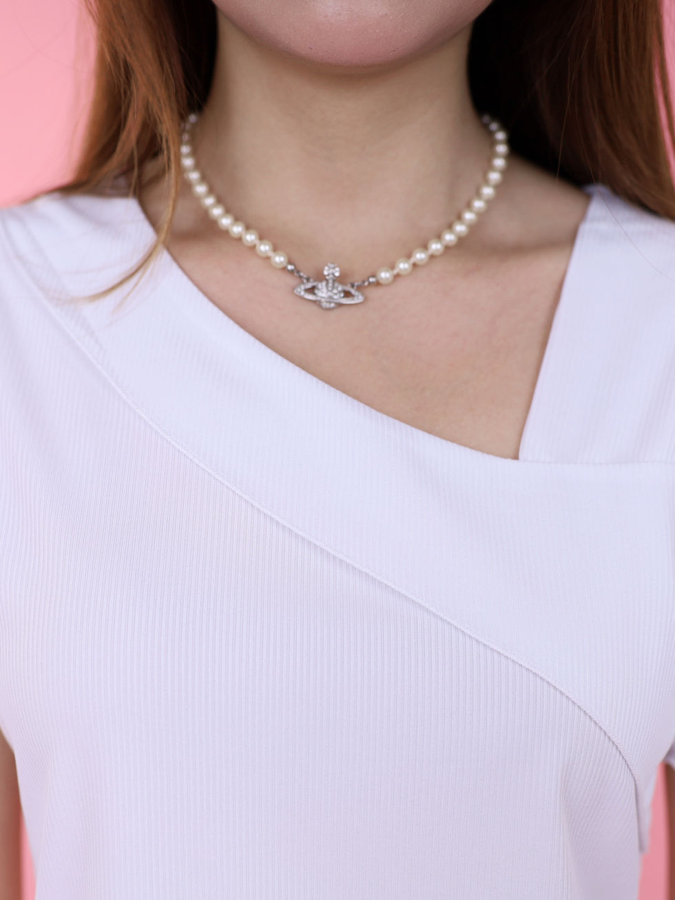 PDLKCB990JPアイスシルク風リブTシャツ レディース 夏 薄手 斜めネック メロウフリルの個性派トップス